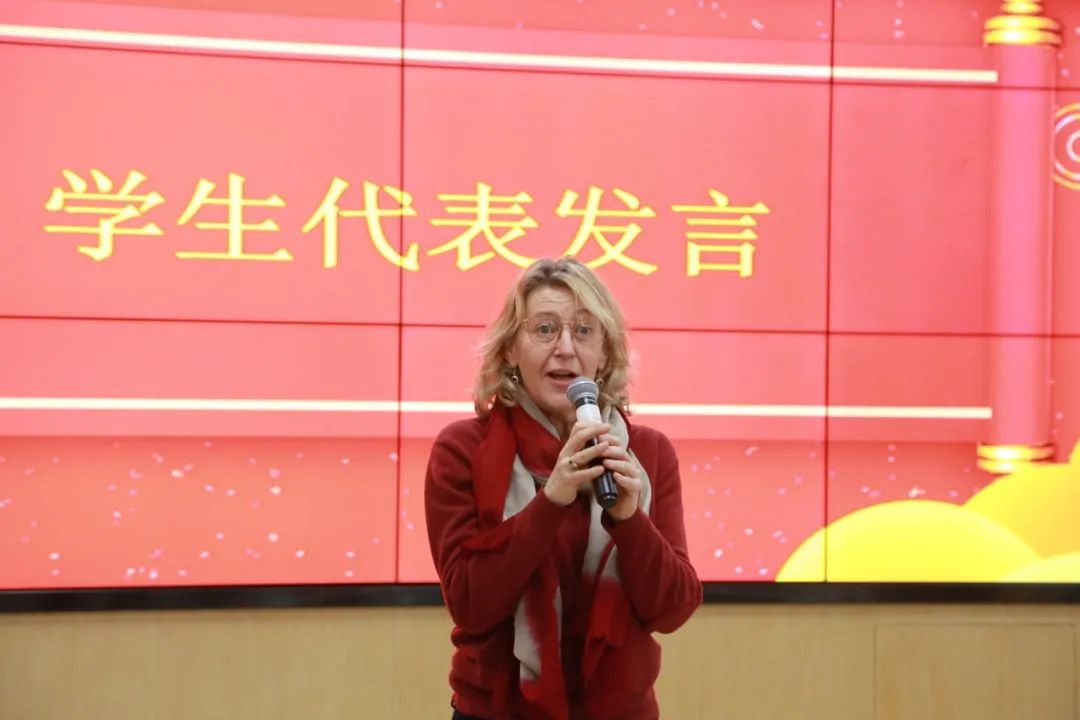 Dean Dong Jing first congratulated the advanced students on their successful graduation and affirmed the learning achievements of the pre-college students. She extended her New Year greetings to the students, encouraging them to continue studying Chinese, pursue their personal dreams, and contribute to the cultural exchange between China and other countries.