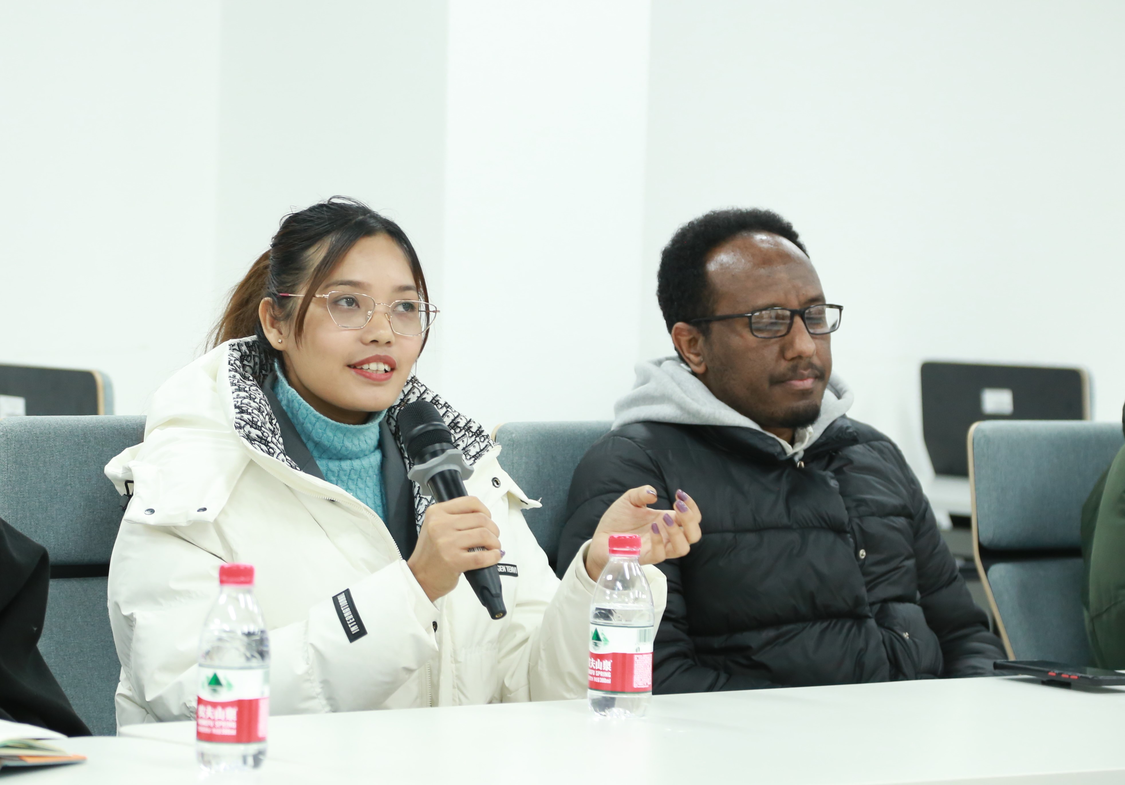 Subsequently, student representatives took turns to speak. The students engaged in an in-depth and lively discussion on various aspects, including the university's courses, admissions, and daily management of international students, and put forward a series of forward-looking and constructive suggestions.