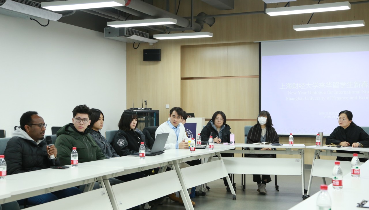 On the morning of January 9th, the International Cultural Exchange College was filled with a warm and enthusiastic atmosphere. The college meticulously organized a New Year Dialogue for international students studying at SUFE. 18 undergraduate and graduate students from 15 countries, including Malaysia, Japan, France, Myanmar, and South Africa, gathered together to celebrate the Spring Festival and discuss development, pooling their wisdom and strength to advance the university's international education endeavors. Attending the symposium were Yang Hong, the Party Secretary of the International Cultural Exchange College, Dong Jing, the Dean, Rong Jun, the Vice Dean, as well as relevant teachers from the International Education and Teaching Center, the International Student Services Office, and the Admission Office.
