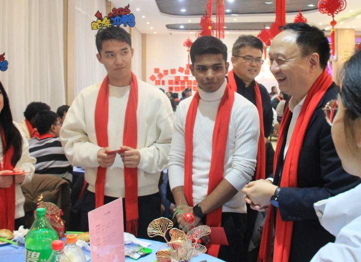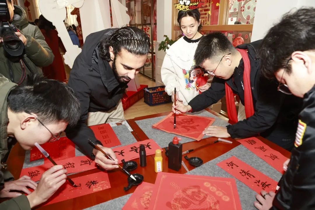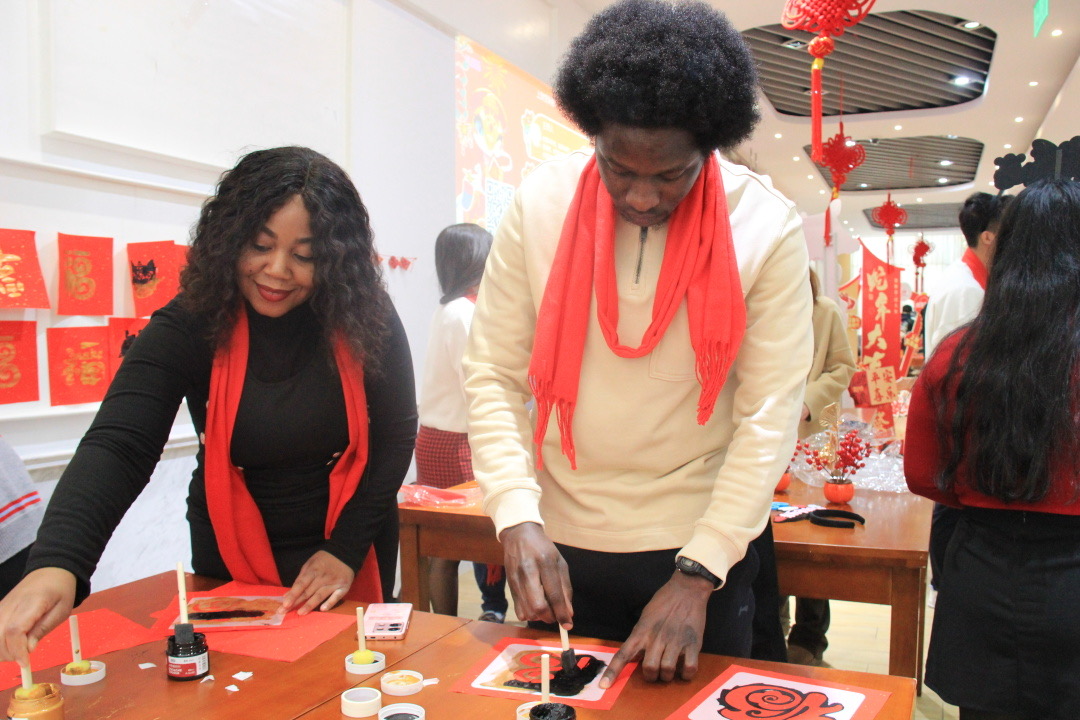 Before the dinner, international students participated in a variety of folk cultural experience activities. They enthusiastically engaged in writing Spring Festival couplets, making dumplings, printing auspicious paintings, and creating lanterns, experiencing the charm of traditional Chinese culture. Lan Lina, a pre-college student from Ecuador, said, "As an international student, participating in the Spring Festival activities at the university this year was an unforgettable and wonderful experience for me. When I stepped into the venue decorated with a strong Chinese New Year atmosphere, the festive and enthusiastic ambiance instantly surrounded me, making me, a wanderer far from home, feel the warmth of home. I also learned how to make dumplings. In this process, I not only enjoyed the fun of hands-on activities but also profoundly understood the meaning of reunion embodied in these small dumplings."