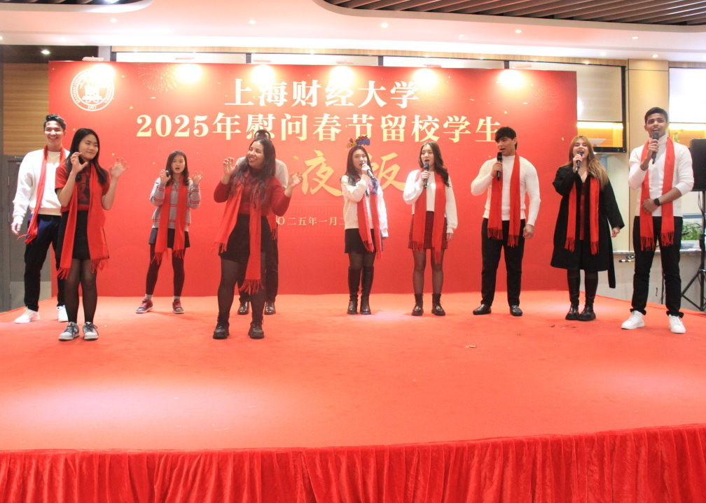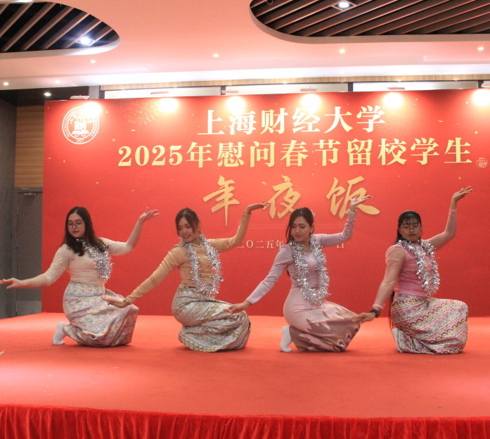 Amidst the joyful atmosphere, students took to the stage one after another to present spectacular cultural performances. The traditional Burmese dance and the multilingual chorus of the song "Two Tigers" by international students enlivened the festive mood, drawing continuous applause from the audience. They participated in their own ways, becoming part of the effort to tell China's stories well. In this process, Chinese students and international students interacted and appreciated each other, spending an unforgettable Chinese New Year together. Armando (from Mozambique), a master's student in Public Administration of the Class of 2023, said, "Today's New Year's Eve dinner is very lively and full of energy. The performances are wonderful, and the air is filled with joy. Participating in such activities allows me to understand and appreciate Chinese culture better. The colorful decorations, music, dance, and delicious food all highlight the charm of traditional Chinese culture, making me feel at home at SUFE! "