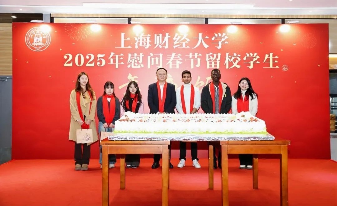SUFE also prepared a birthday surprise for students who had their birthdays in January, three of whom were international students. Secretary Xu Tao presented birthday gifts to six students, and all the teachers and students joined in sending their birthday wishes. Secretary Xu and the six birthday celebrants together cut the New Year's cake, symbolizing completeness and blessings.