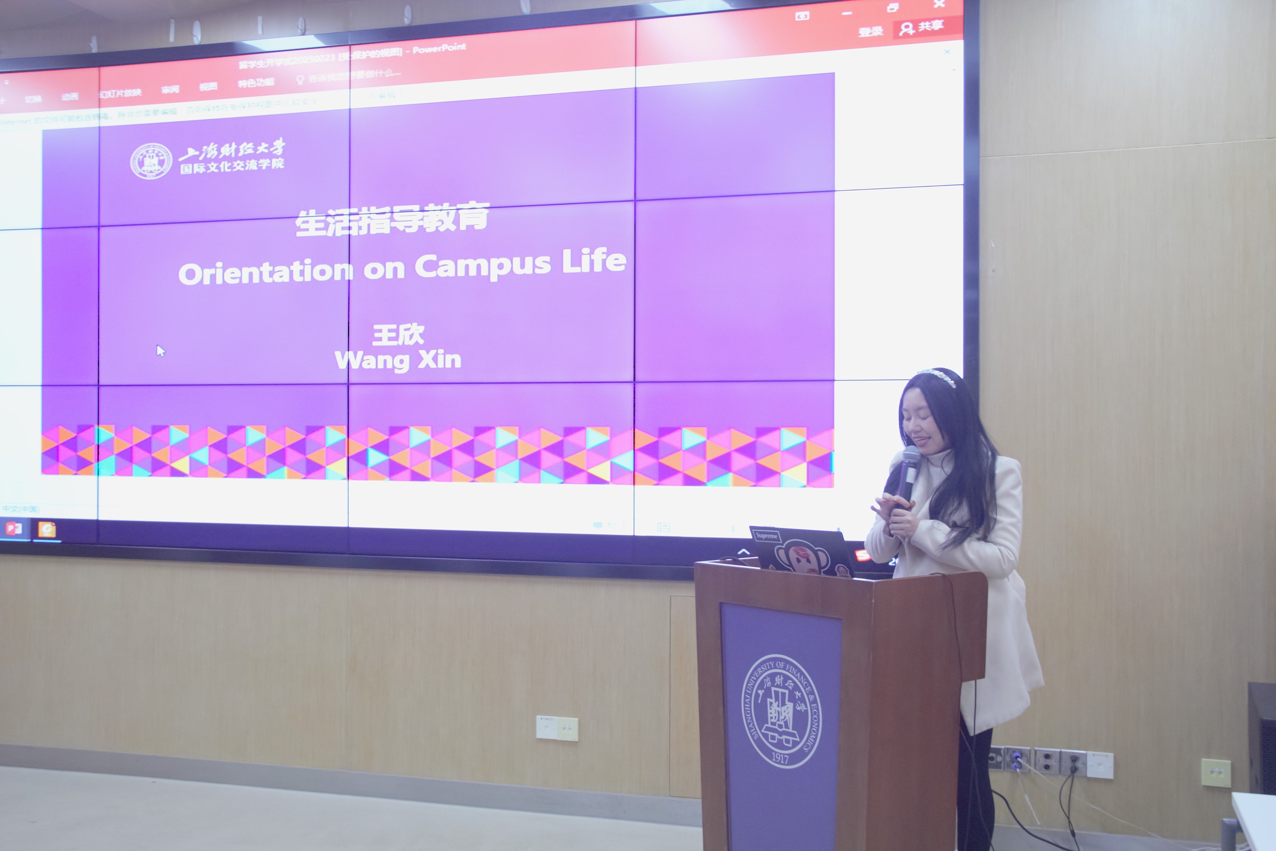 Dean Dong Jing extended a warm welcome to the international students from across the globe on behalf of the college. She introduced the century-long academic heritage and vibrant campus life of SUFE to the new students, encouraging them to face the challenges of cross-cultural adaptation positively. She noted that through the teacher-student mutual aid platform and cultural practice activities, every student could explore and experience the charm of Chinese culture and achieve unique personal growth. In closing her speech, Dean Dong Jing wished all the international students a smooth life and academic success in the new semester and new environment.