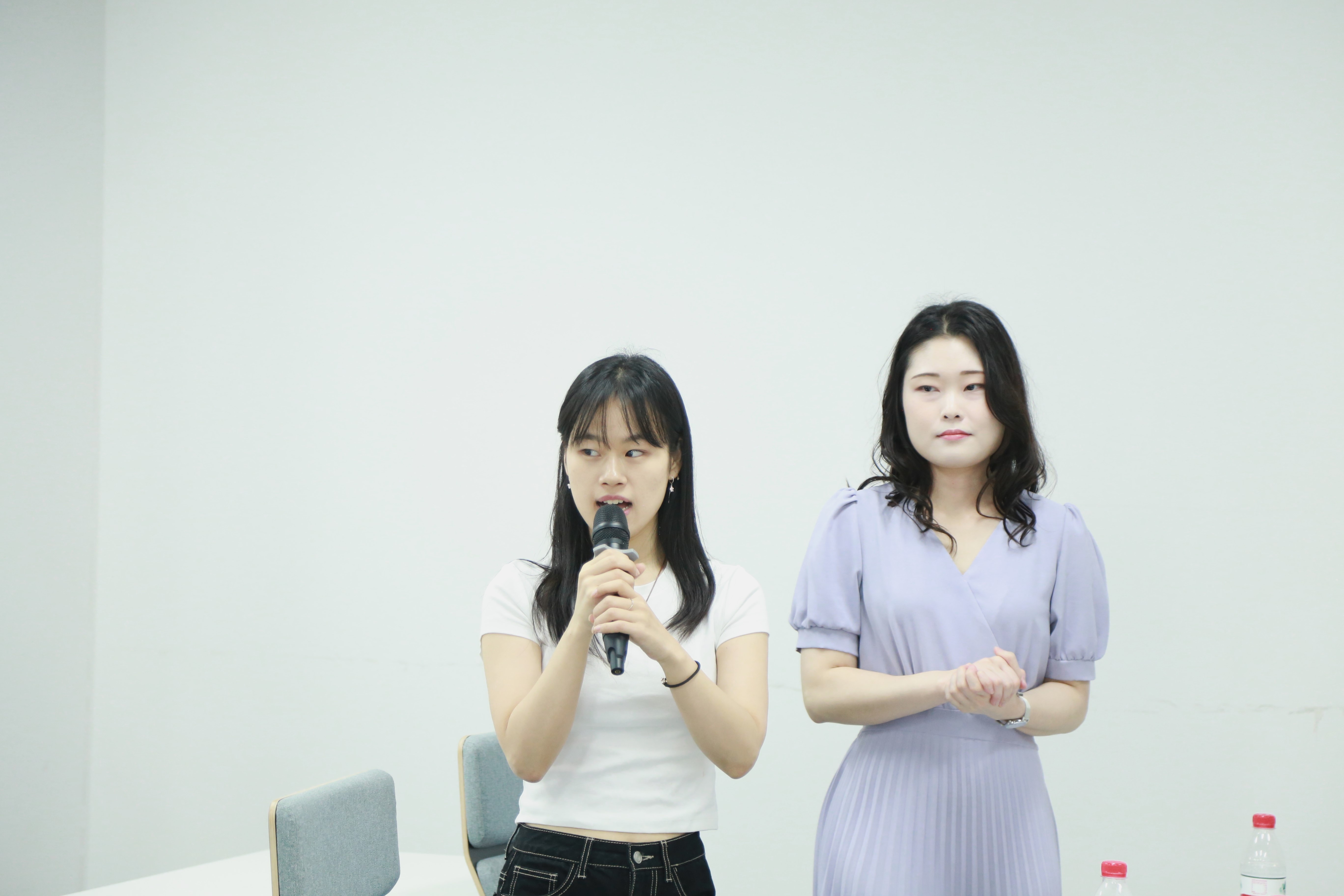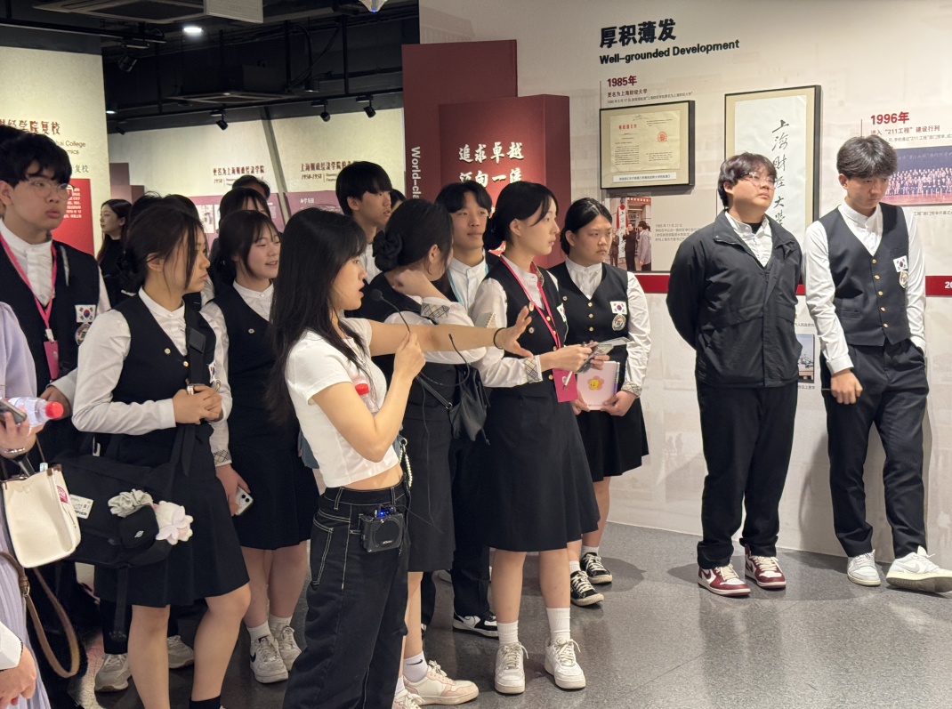 Two Korean international student volunteers from our university, Lee Jirin and Park Eun-young, provided translation and guidance services throughout the visit, fully demonstrating the diverse and international atmosphere of SUFE.
