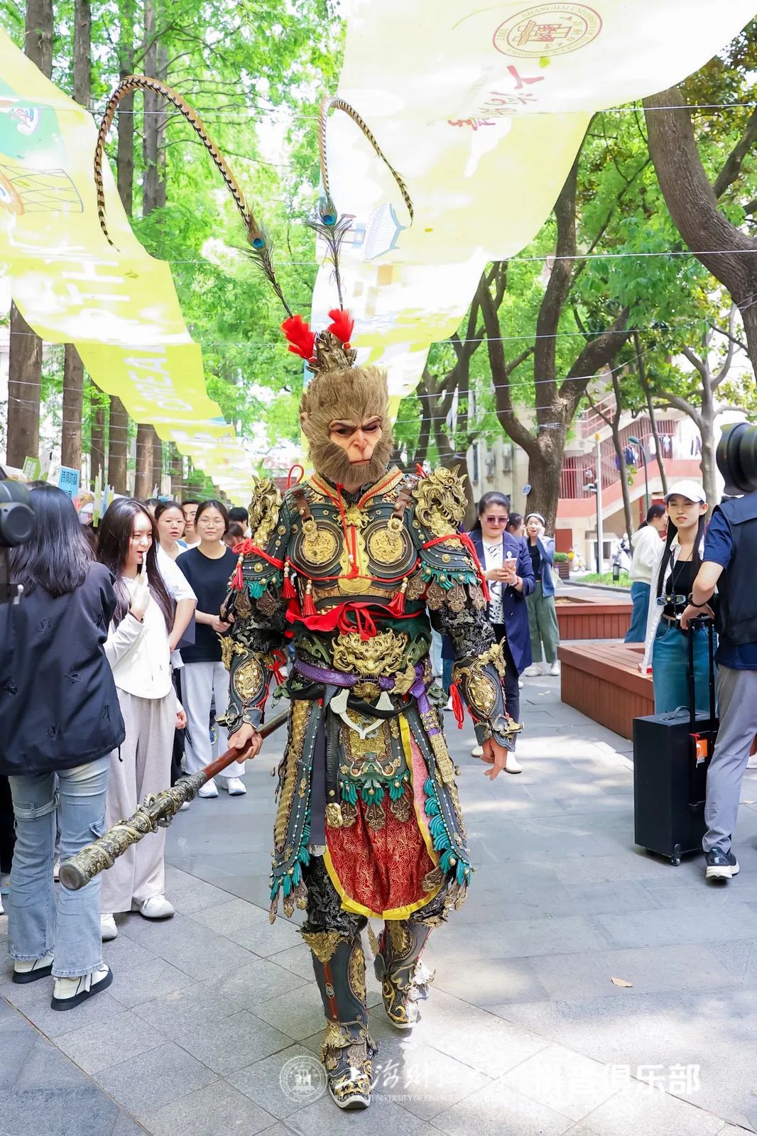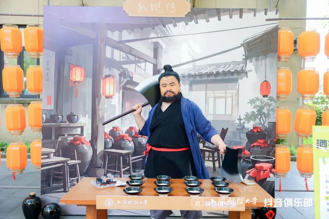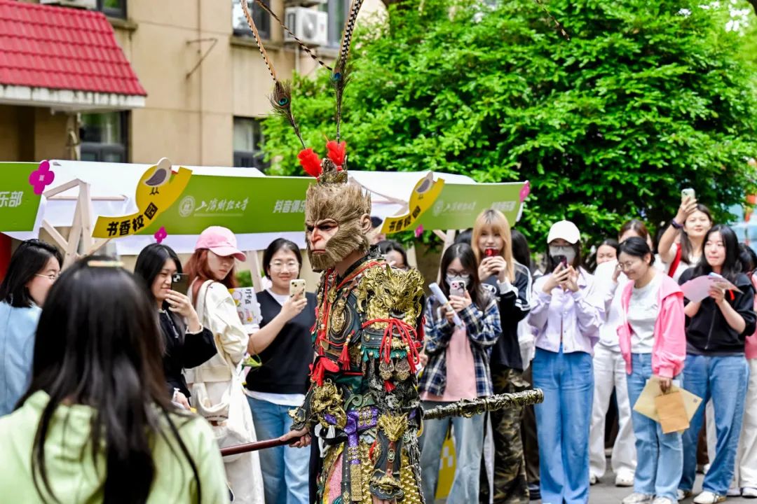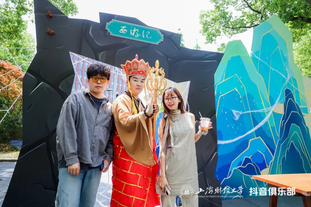 SUFE, in association with the Douyin Club, has established a thematic cultural experience area for the Four Great Classical Novels. Classic characters from these novels “step out of the books” to join students in revisiting and performing these classics, providing an immersive experience of traditional culture. The Black Wukong flash mob performance, accompanied by the majestic melody of the theme music, interacts closely with teachers and students at the scene, offering a double shock to the senses of sight and hearing!