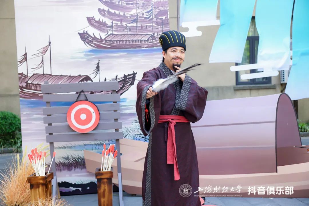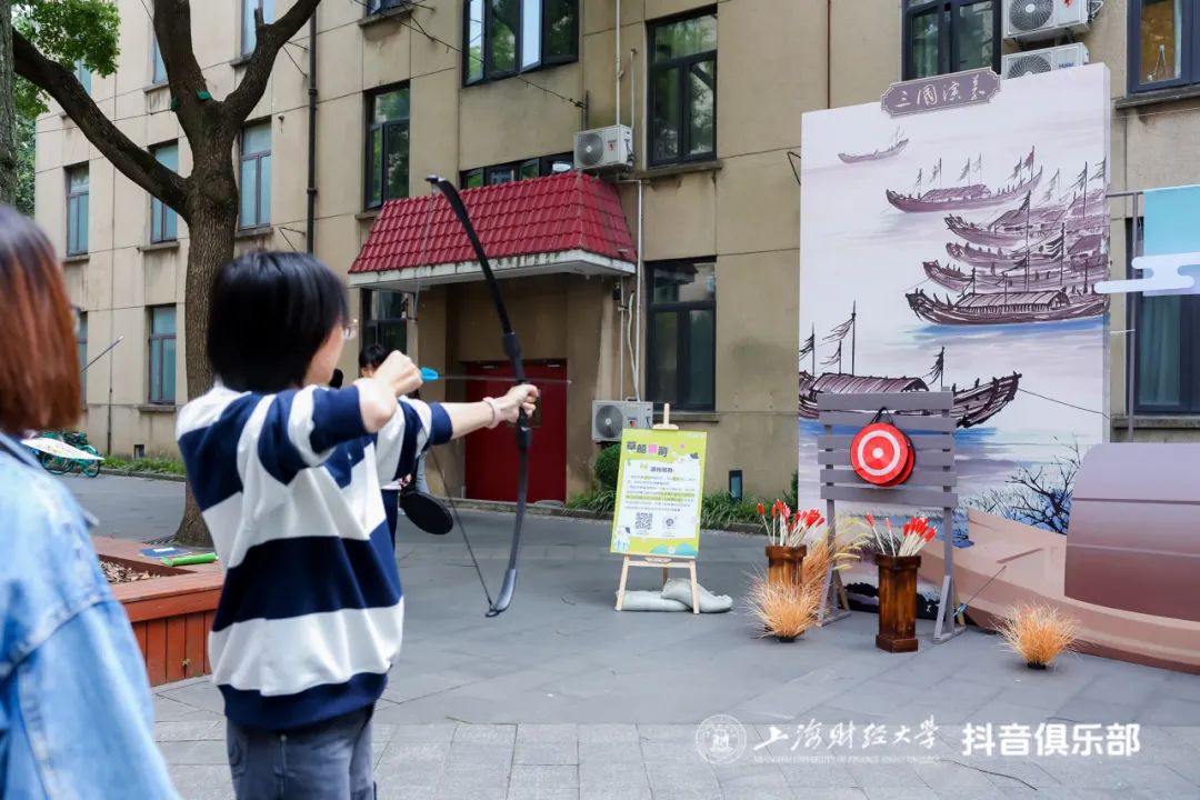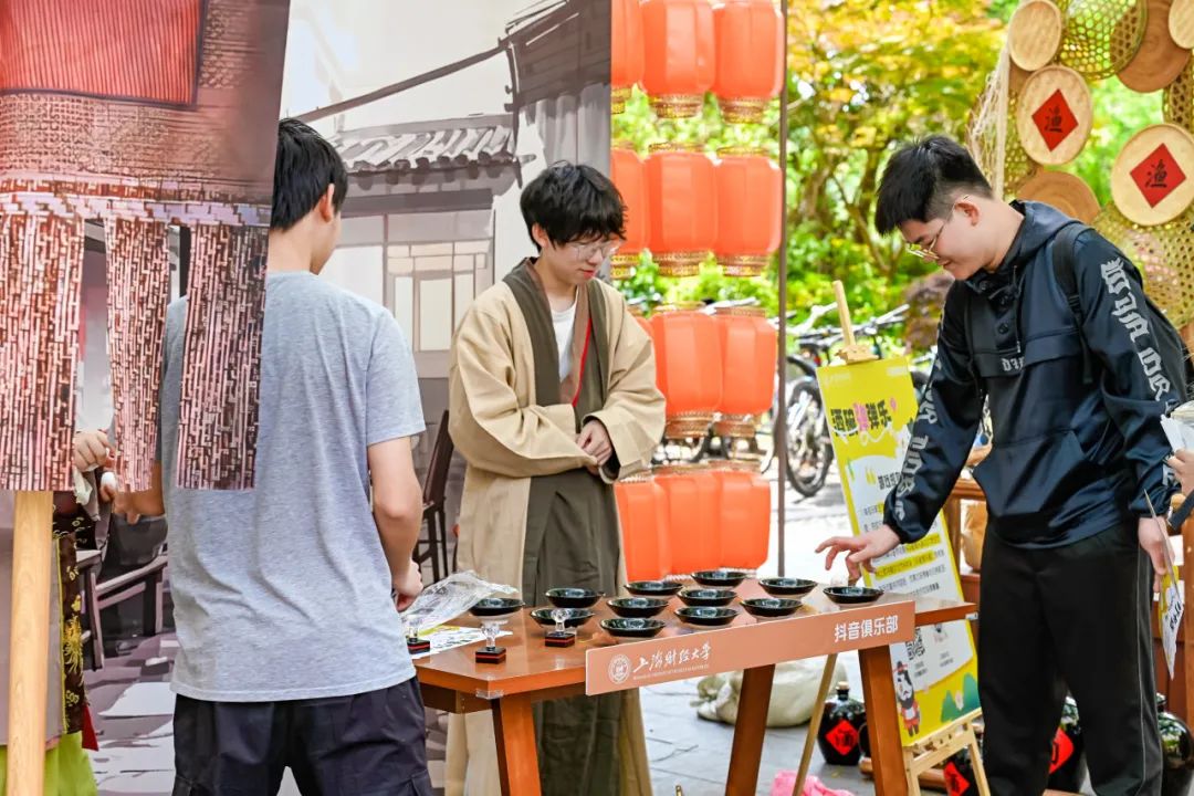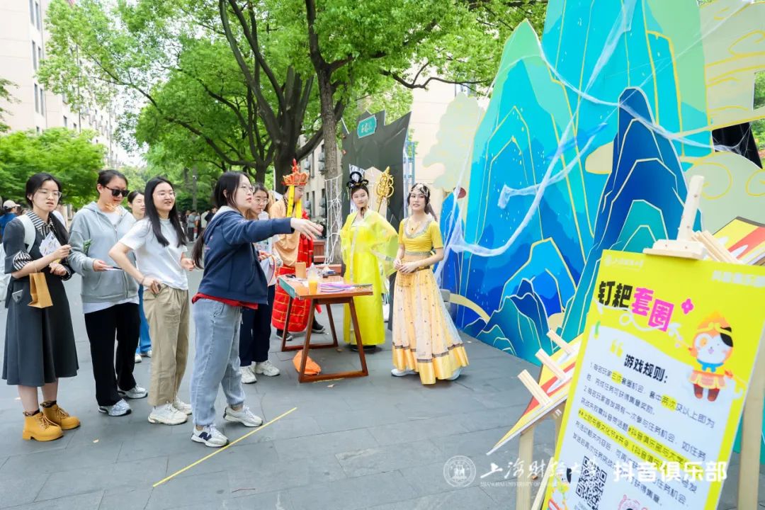 SUFE, in association with the Douyin Club, has established a thematic cultural experience area for the Four Great Classical Novels. Classic characters from these novels “step out of the books” to join students in revisiting and performing these classics, providing an immersive experience of traditional culture. The Black Wukong flash mob performance, accompanied by the majestic melody of the theme music, interacts closely with teachers and students at the scene, offering a double shock to the senses of sight and hearing!