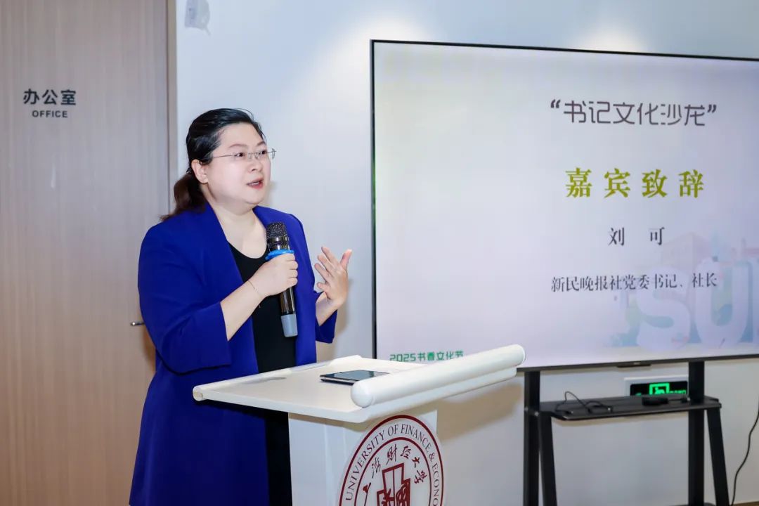 SUFE's Party and administrative leaders Xu Tao, He Pengcheng, Li Zengquan, Liu Liya, Liu Qingsheng, Zhou Guoliang, and Jin Yuying, as well as Party committee members Cao Dongbo and Chu Hua, attended the event. Liu Ke, the Party secretary and editor-in-chief of Xinmin Evening News, Qin Jiancong, a director of Shanghai University of Finance and Economics and chairman of Southeast Elevator Co., Ltd., intangible cultural heritage inheritor and ancient books restorer Lian Chengchun, and cooperative units such as Douyin Campus and Lvwa Bookstore, as well as relevant departments within the university, also participated in the event.
