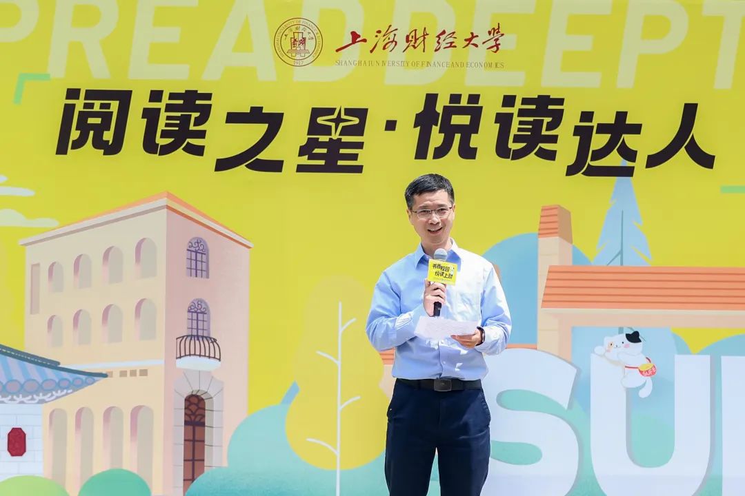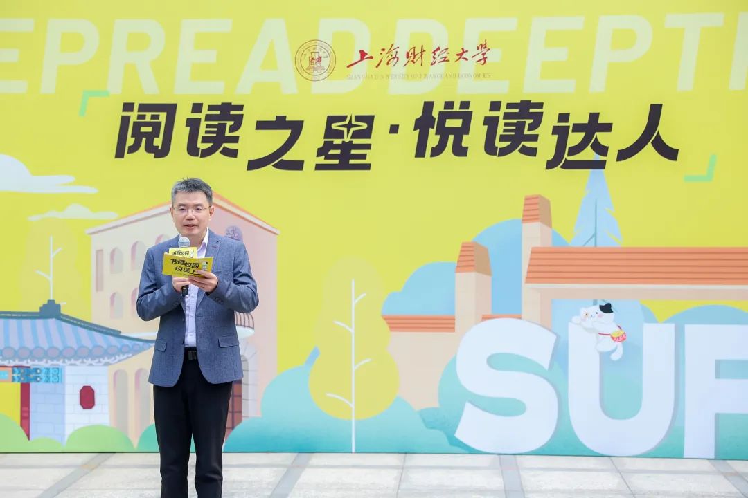 To further enhance the humanistic temperament and transcendent spirit in campus culture, and to play a positive role of general education and classic reading in the cultivation of first-class talents, SUFE encourages its students to walk with classics and be accompanied by famous works. The fourth "Reading Star·Pleasant Reading Expert" award ceremony of SUFE was held on Lvye Pedestrian Street. Xia Jijun, director of the Academic Affairs Office, on behalf of the "Reading Star·Pleasant Reading Expert" selection committee, introduced the classic reading work of SUFE and the selection of the fourth "Reading Star·Pleasant Reading Expert" award. Xu Tao, Liu Qingsheng, Zhou Guoliang, Jin Yuying, and Chu Hua successively presented awards to the winners of "Reading Star" and "Pleasant Reading Expert" and outstanding organizing units.