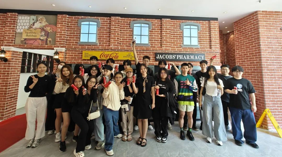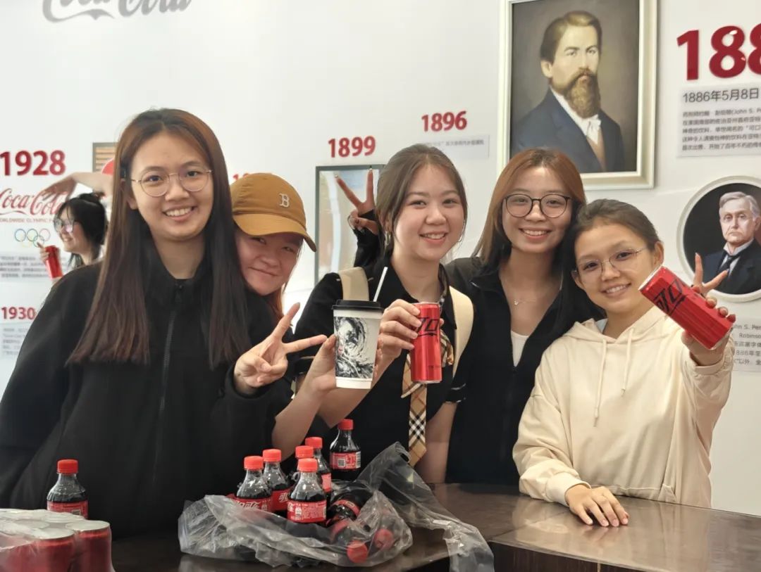Subsequently, the students entered the core exhibition hall of the Coca-Cola museum, where they learned about the global brand and product family of Coca-Cola, its cooperation with the Olympic Games, its quality management system, its localization strategy in China, and various Coca-Cola artistic souvenirs that integrate Chinese elements.