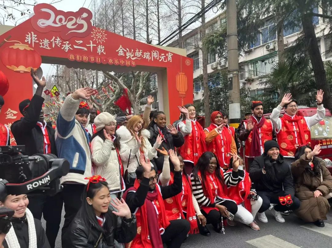 我校来华留学生在四平路街道沉浸式体验中国年