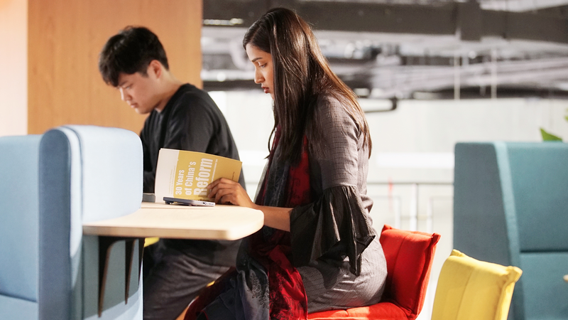 读者可使用校园卡或进行人脸识别进入。一至七层均设有阅览室或研讨室,可自主选择区域学习。图书馆开放时间为周一至周日8:00-22:00,延时学习区(五楼个人学习空间、一楼书库)可学习至24:00。