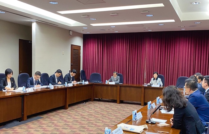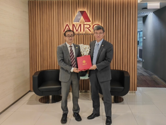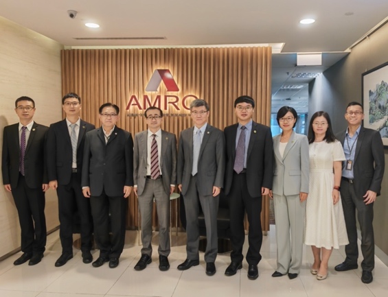 除高校外,代表团此行也走访了在新国际组织机构、外交机构和金融机构。10月26日上午,代表团一行访问了东盟与中日韩宏观经济研究办公室(AMRO),与主任李扣庆、首席经济学家许和意、高级经济学家符传咏、经济学家赵洪岩进行了会谈。李主任介绍了AMRO的成立背景、组织架构、主要目标和研究团队。刘校长介绍了上财与AMRO的合作交流情况以及最新发展成果,表示希望与AMRO开展更多智库和科研方面的合作,在资政和研究引领方面发挥双赢作用。双方就未来在共享科研成果、开展中国相关问题合作研究、联合举办学术研讨会、建立智库网络、学生海外实习等可能合作的领域展开了交流讨论。