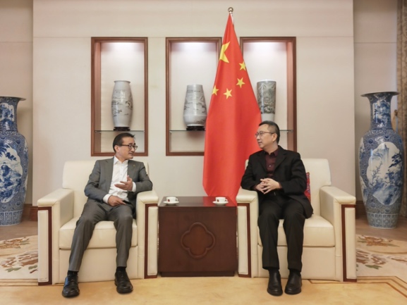 26日下午,刘元春校长访问了中国驻新加坡大使馆,拜会临时代办朱憬和教育处公参韩骏。刘校长受邀为使馆工作人员做“内需逐步企稳的中国宏观经济”主题讲座,并围绕如何学习领会习近平新时代中国特色社会主义思想与使馆工作人员进行了交流。