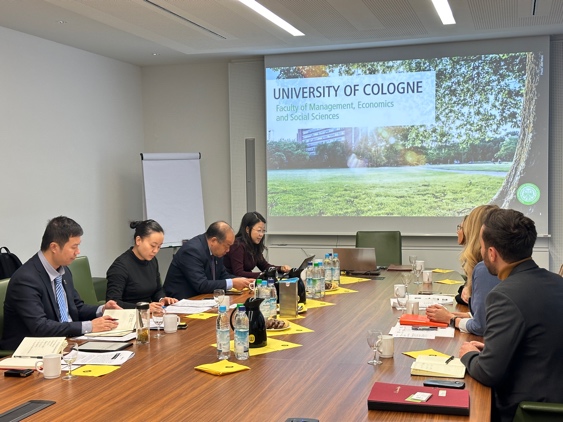 在访问德国科隆大学期间,代表团与该校国际处处长Susanne Preuschoff,管理、经济与社会科学院院长Ulrich Thonemann等代表进行了会谈。双方围绕加强人才培养、完善课程项目建设、深化校际合作等方面展开了交流讨论并达成共识。朱鸣雄副书记表示希望两校充分发挥各自在经济学等学科领域的特色优势,在深化师生交流互访的基础上,进一步加强学术交流与合作。会谈期间,我校与该校管理、经济与社会科学院正式签署了院级合作谅解备忘录,双方将进一步推动教师互访、学生交流交换、海外实习以及学术交流等合作。