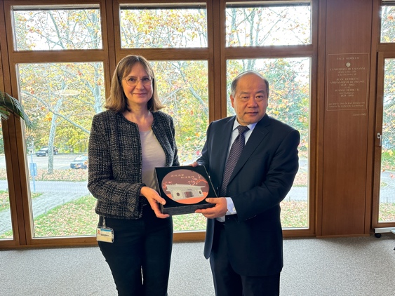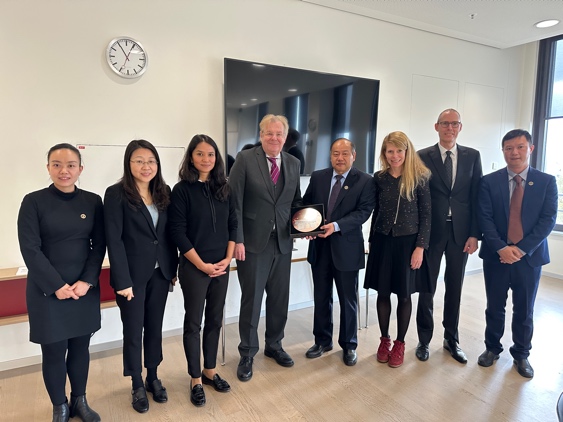 访问期间,代表团还分别看望了我校在德国和瑞士的校友代表,向校友们介绍了学校的最新办学成果及发展动态,代表学校表达了对校友们的关心与关爱,与校友们共叙求学往事。在瑞期间,代表团一行在我校就职于联合国的校友陪同下参观了联合国日内瓦办事处,与校友们亲切座谈,了解校友们在联合国相关组织的事业发展情况。朱鸣雄副书记表示学校一直以来高度重视国际组织人才培养,希望校友们在国际组织工作中继续发扬我校匡时精神,为推动国际治理体系变革、构建人类命运共同体贡献上财智慧与力量。